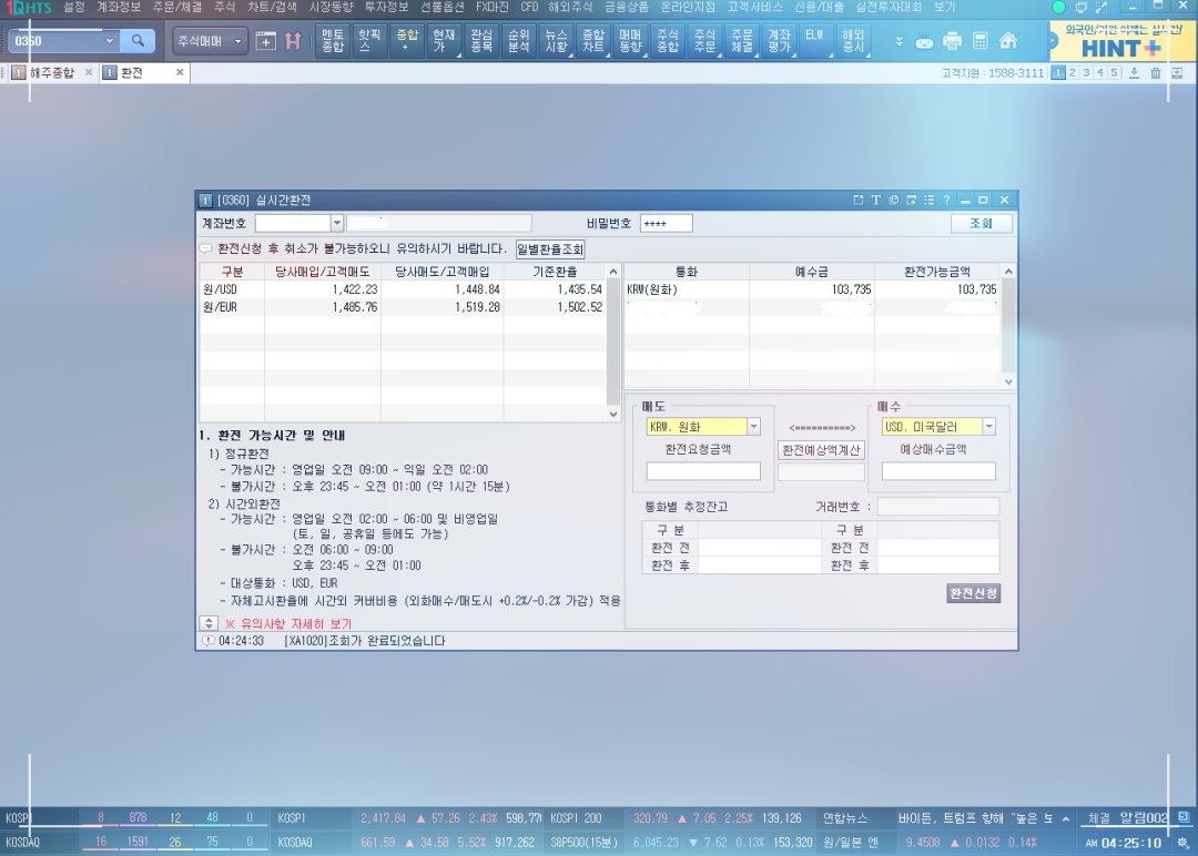 오른쪽엔 나의 원화예수금이 있고 환전가능금액이 써있다.