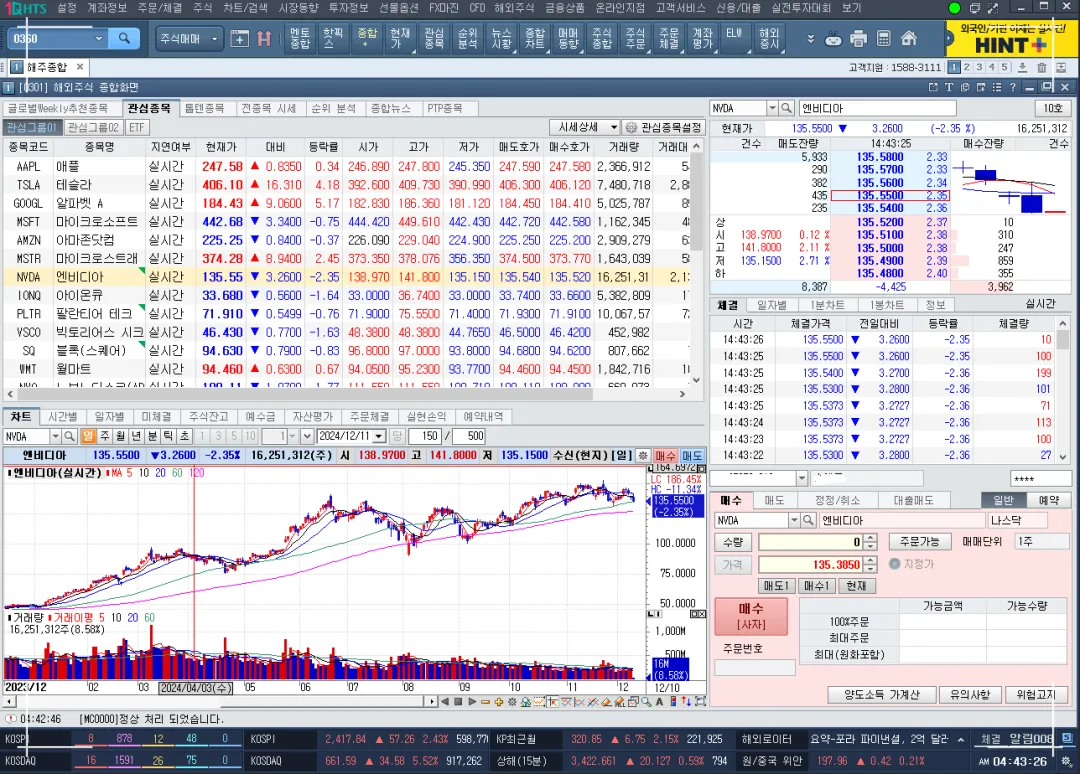 관심종목 목록에 설정해놓고 해외주식종합화면을 띄워놓은순간 너무나 정신없이 거래되는 주식현황에 살짝 얼었다.