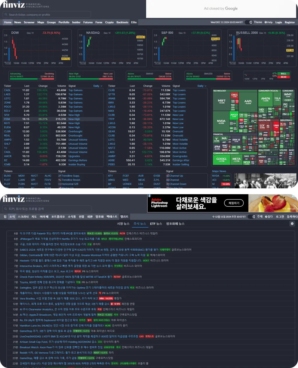 현재 미국 주식시황과 뉴스를 바로 생중계해줘서 현지사정을 바로 알 수 있다.
