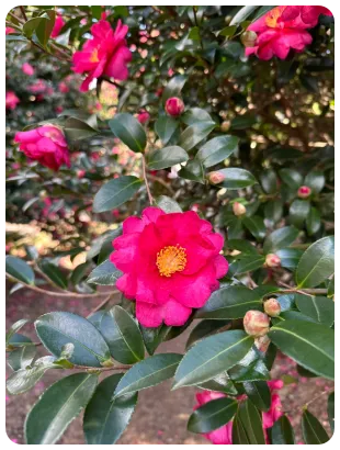 한여름에 피는 장미처럼 한겨울에 피는 빨간 동백꽃이 참 신기하고 이쁘다