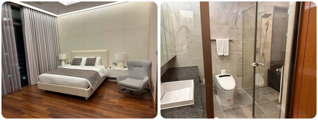 처음 갔을 때는 난방이 외출로 되어있어서 조금 추웠는데 난방 온도 셋팅하고 한참 있으니 나중엔 더울정도로 따뜻해졌다.