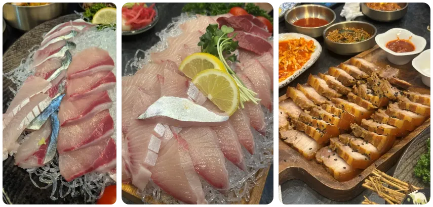 그럼에도 불구하고 주문해서 나온 겨울 제철 방어회는 내가 먹기에도 비린맛이 전혀 없고 탱글탱글하면서도 쫀쫀한것이 꼭 연한 소고기같은 느낌이었다.